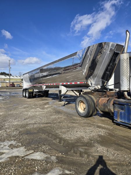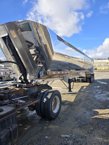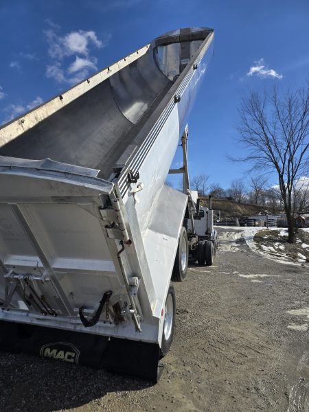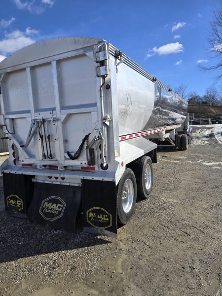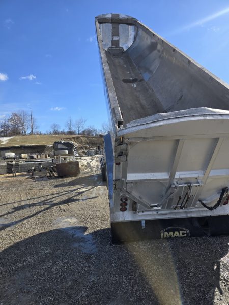Rebuilt 2015 MAC End Dump Trailer with a unique round bottom design. Features include air ride suspension, NEW brakes, 80% 11 22.5 super single tires on aluminum wheels, and a 3-way gate. This trailer also boasts a man door, back ladder, mud flaps, and a coal/grain chute. Ready for heavy-duty hauling! Rebuilt title.